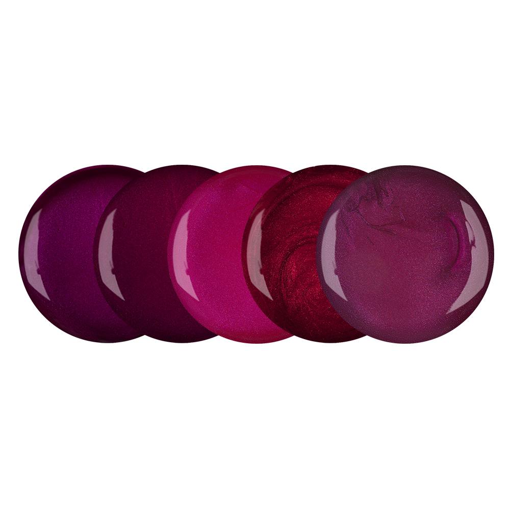 Pet UV/LED laku na nehty 2,5 ml v jedné krabicce. Krabicka Frozen Berries prináší úžasne sveží kombinaci ovoce s oblíbenými klasickými laky: Cello, Majestate, Strong, Princess a Wild & Free.