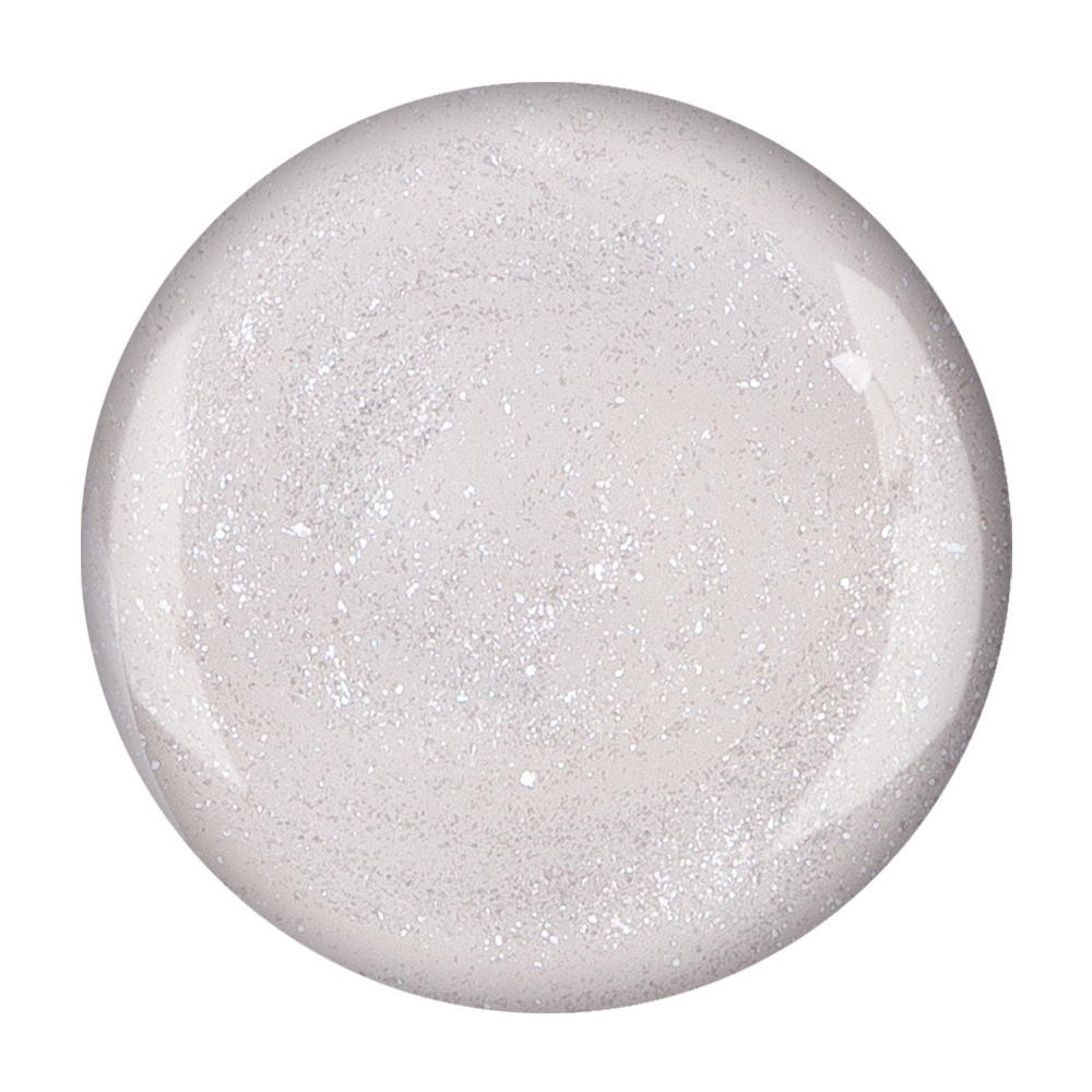 Stríbrite nepruhledná bílá. Ideální pro zakrytí, zakrytí a prodloužení nehtového lužka, zanechává na nehtech trpytivý výsledek a je vhodný pro moderní variantu baby boomeru.
