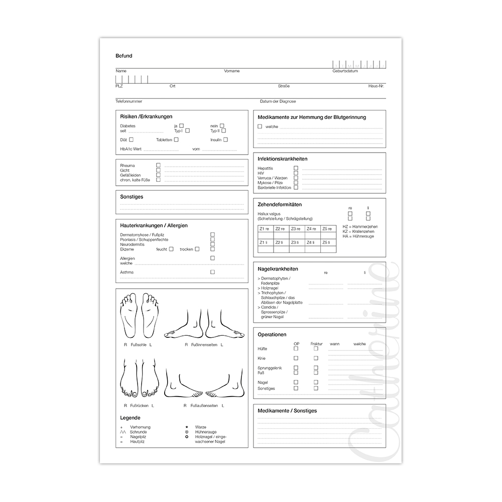 Informativní dotazník (potenciálne lékarsky relevantní). K zahájení péce o nohy optimálne pripraven. 100 kusu.