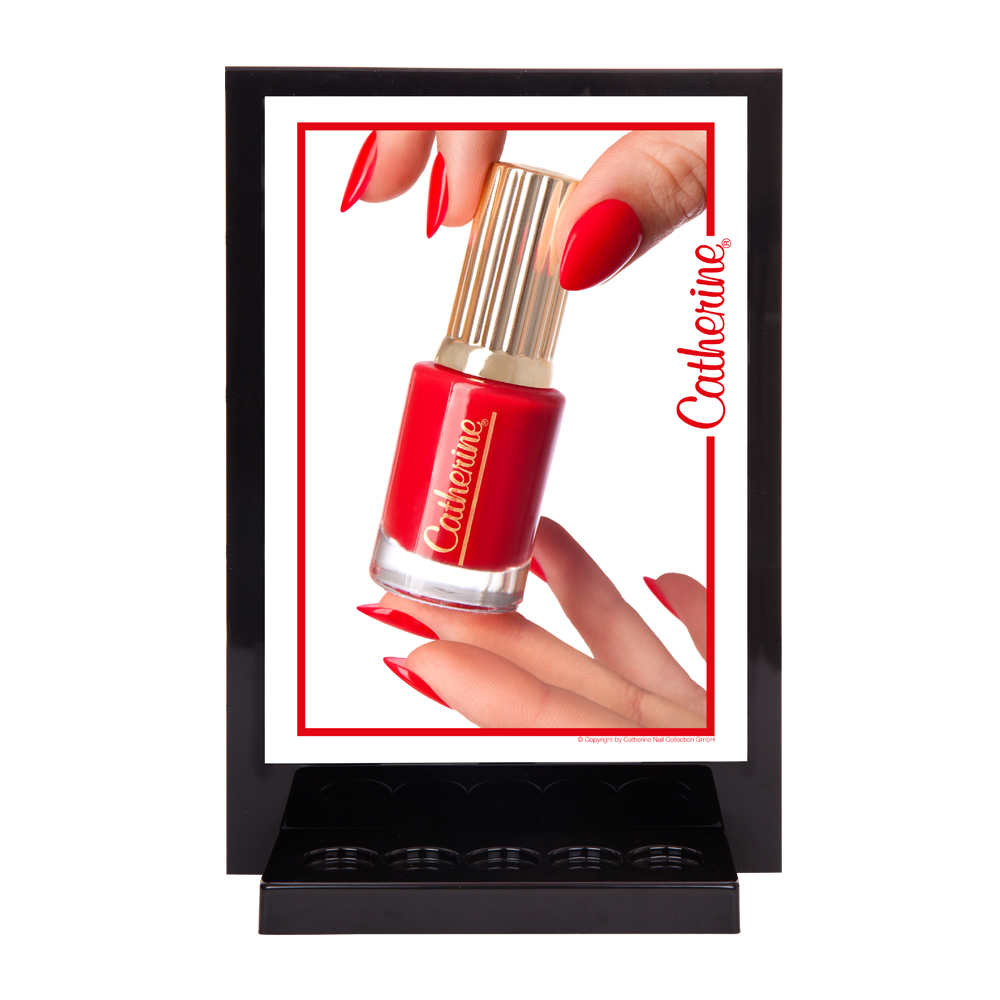 Dekorativní stojan pro prezentaci: Dekorativní stojan v elegantní cerné barve nabízí prostor pro 20 barevných laku s kartonovým obalem a navíc mužete na prední strane prezentovat pet vybraných laku jako zvláštní pozornost.