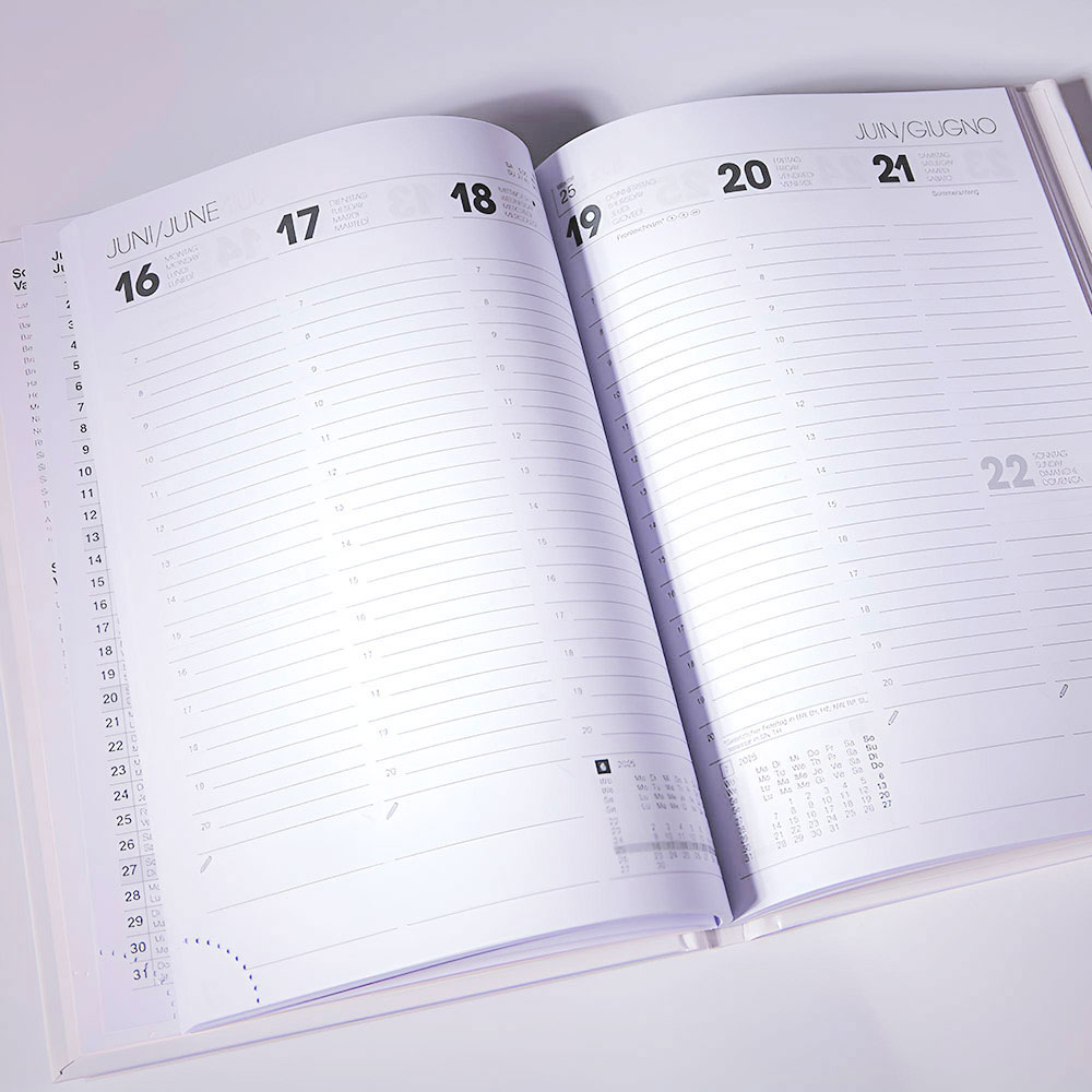 Praktický diár ve forme knihy vám na dvoustrane prehledne zobrazí celý týden.