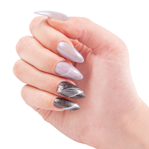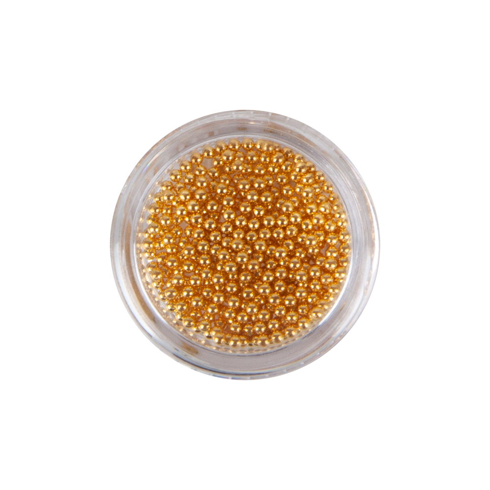Goldene Mini-Perlen. Mit dem Pick & Place werden die Perlen ganz einfach auf dem Nagel platziert. Die Perlen ziehen sich automatisch zueinander, sodass eine einfache Linienführung gewährt wird.