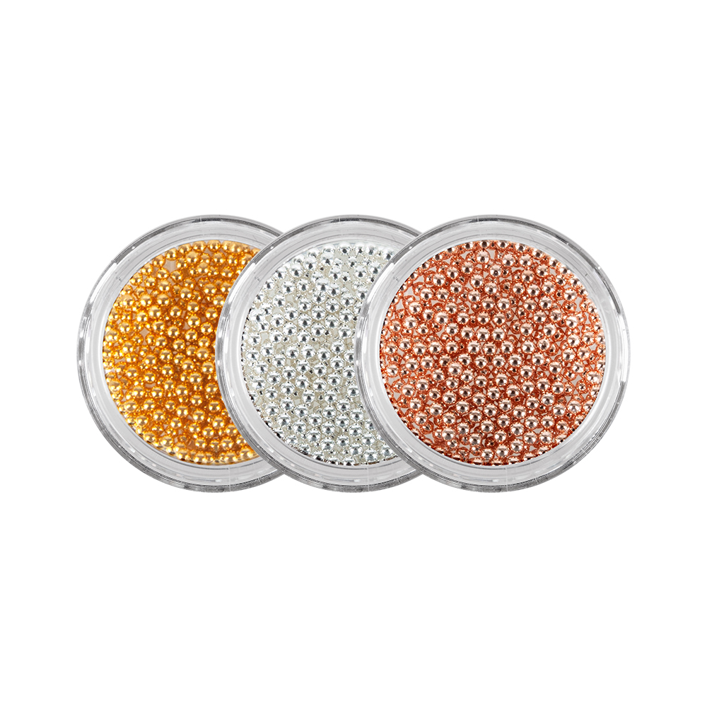 Silberne Mini-Perlen. Mit dem Pick & Place werden die Perlen ganz einfach auf dem Nagel platziert. Die Perlen ziehen sich automatisch zueinander, sodass eine einfache Linienführung gewährt wird.