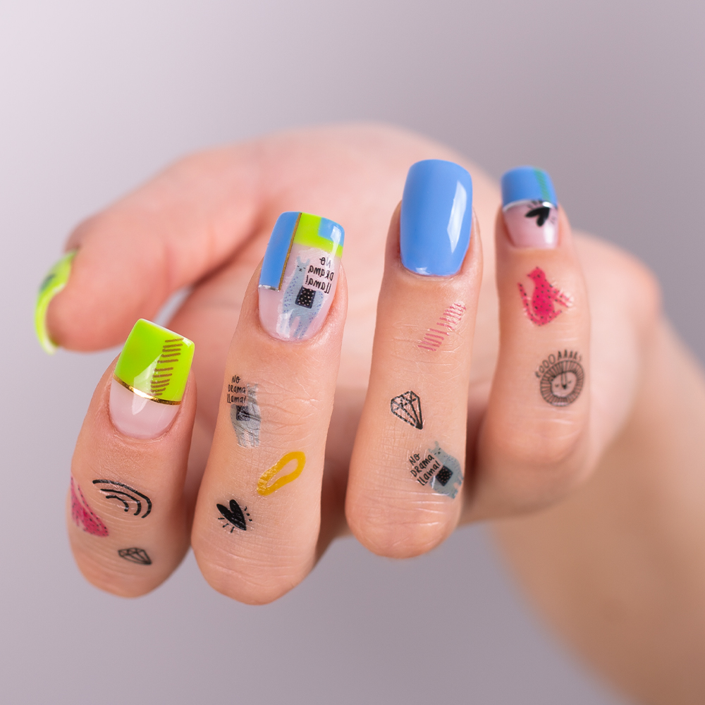 Nail Tattoos mit hippen Motiven.