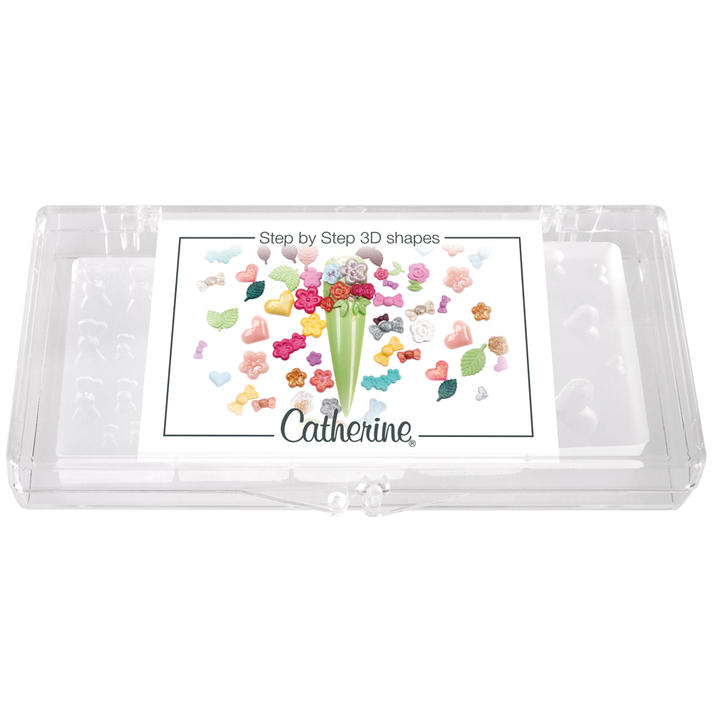 Set für das Formen von einzigartiger 3D Nail Art. Einfach das gewünschte Motiv mit UV/LED nail polish oder Modelliergel ausfüllen, aushärten und in die Schwitzschicht setzen. Das Set enhält: je 1 x 3d shape loops, roses, leaves, flowers + hearts davon GRATIS 1 x 3d shape.