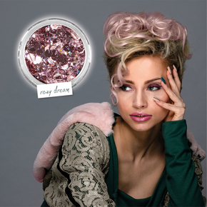 Glitter-Nail-Art in Flieder. Anwendung: Glitter Mix auflegen oder auftupfen und anschließend versiegeln.