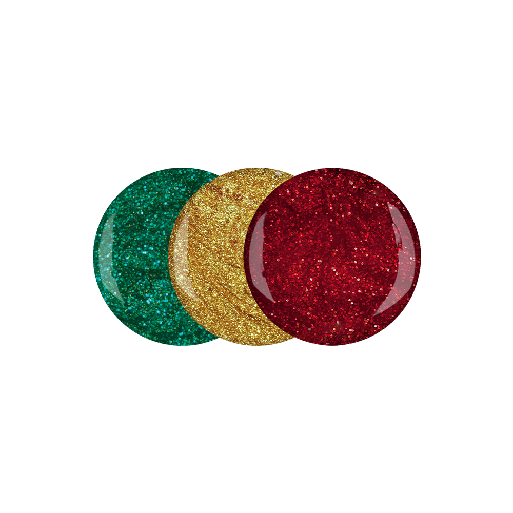 Drei Glimmer Gele in einem Set. Es glitzert und funkelt weihnachtlich auf den Nägeln mit den Farben des HoHoHo Sets. Die Nägel strahlen um die Wette und geben jedem X-Mas-Look eine Extra Portion Weihnachtszauber. Perfekt gestylt steht so einem berauschenden Weihnachtsfest mit vielen schönen Momenten nichts mehr im Weg. Die drei Farben „hey santa“, „holy night“ und „x-mas tree“ schreien förmlich nach Weihnachten und sind absolute Must-haves für alle Glitzer-Fans. Enthält: 3 x glimmer gel à 5 g / 4,5 ml / 0,16 fl.oz. + GRATIS: Strasssteine, sortiert.