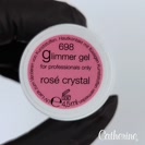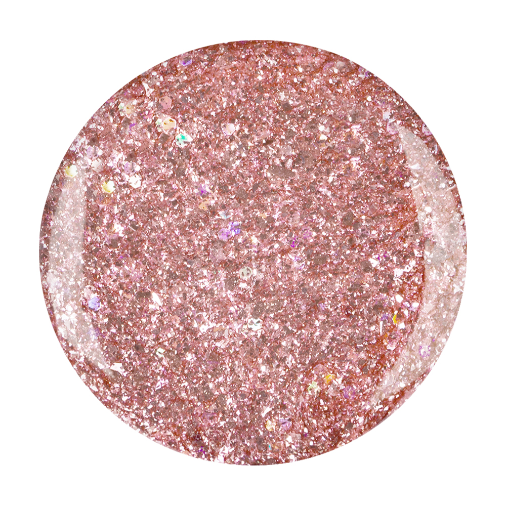 Glimmer Gel rosé crystal – dieses Gel bringt den Roségold-Klassiker zum Funkeln. Mit funkelnden Partikeln, changierenden Reflexen und edlem Glimmer-Effekt wirkt es wie Schmuck in Gel-Form. Für Nageldesigns, die Luxus nicht andeuten – sondern tragen.