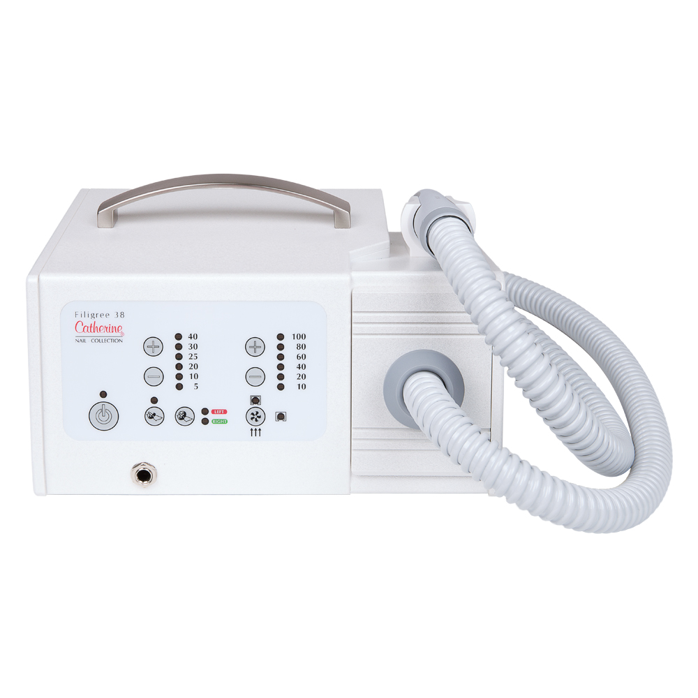 Leistungsstarker Fräser. Der Filigree 38 kombiniert modernes Design mit optimiertem Arbeitskomfort, denn ein vibrationsarmer Motor, das Präzisionshandstück und die integrierte Staubabsaugung ermöglichen effektives, sicheres und sauberes Arbeiten. Leistung: 5.000 – 40.000 U/min, Geräuschpegel: 68dB(A), Maße: B/H/T: 23,3 cm x 14 cm x 20,8 cm, Gewicht Handstück: 130 g, Gewicht komplett: 3,1 kg.