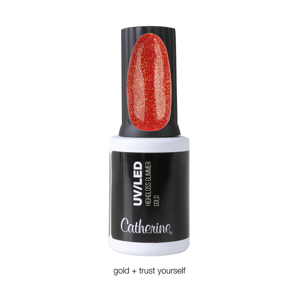 Zur hochglänzenden Abschlussversiegelung mit goldenem Glimmer-Effekt. Je nach Untergrundfarbe wirkt der Glimmer-Effekt anders und ist somit auch perfekt kombinierbar mit unseren Trendfarben selfLOVE. Funkeln Sie mit Ihren Kunden um die Wette, denn Glimmer macht Spaß! Mit integriertem Profipinsel. Für alle Catherine Gele geeignet.