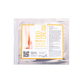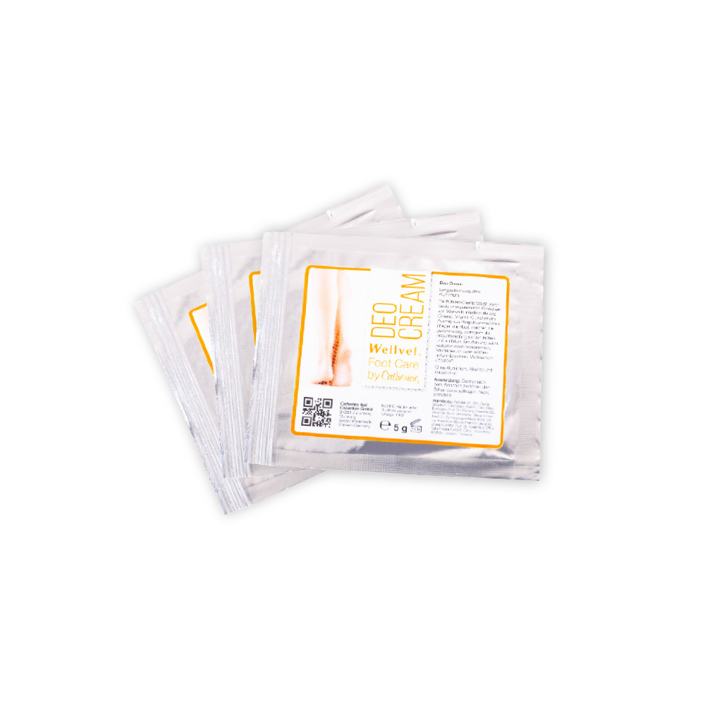Deo Cream mit Langzeitwirkung in 5-g-Probiergröße. Die Fußdeo-Creme beugt zuverlässig unangenehmen Gerüchen vor. Wertvolle Inhaltsstoffe wie Olivenöl, Vitamin C und einem Auszug aus Ringelblumenblüten pflegen die Haut, machen sie geschmeidig, verringern die Geruchsbildung an den Füßen und entfalten ihre Wirkung auch weiterhin nach Schwimmen, Saunabesuch oder wiederholtem Duschen. Mit frischem Zitrusduft. Anwendung: Creme nach dem Waschen zwischen den Zehen dünn auftragen. Nicht einreiben!