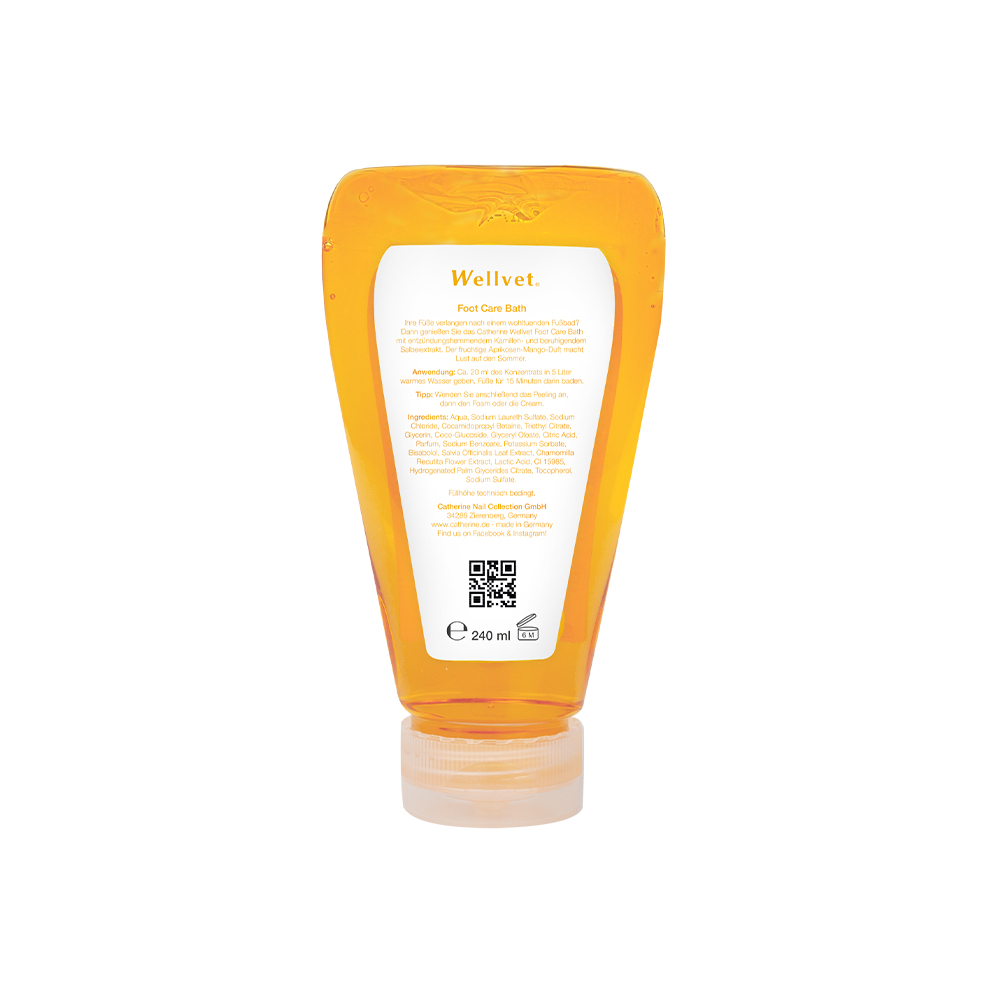 Passender Auslaufhahn ist separat erhältlich. Genießen Sie das Catherine Wellvet Foot Care Bath. Der fruchtige Aprikosen-Mango-Duft macht Lust auf den Sommer. Anwendung: ca. 20 ml des Konzentrats in fünf Liter warmes Wasser geben. Füße für 15 Minuten darin baden. Tipp: Wenden Sie anschließend das Peeling an, dann den Foam, die Cream, oder die Lotion. In dieser Woche GRATIS: Auslaufhahn