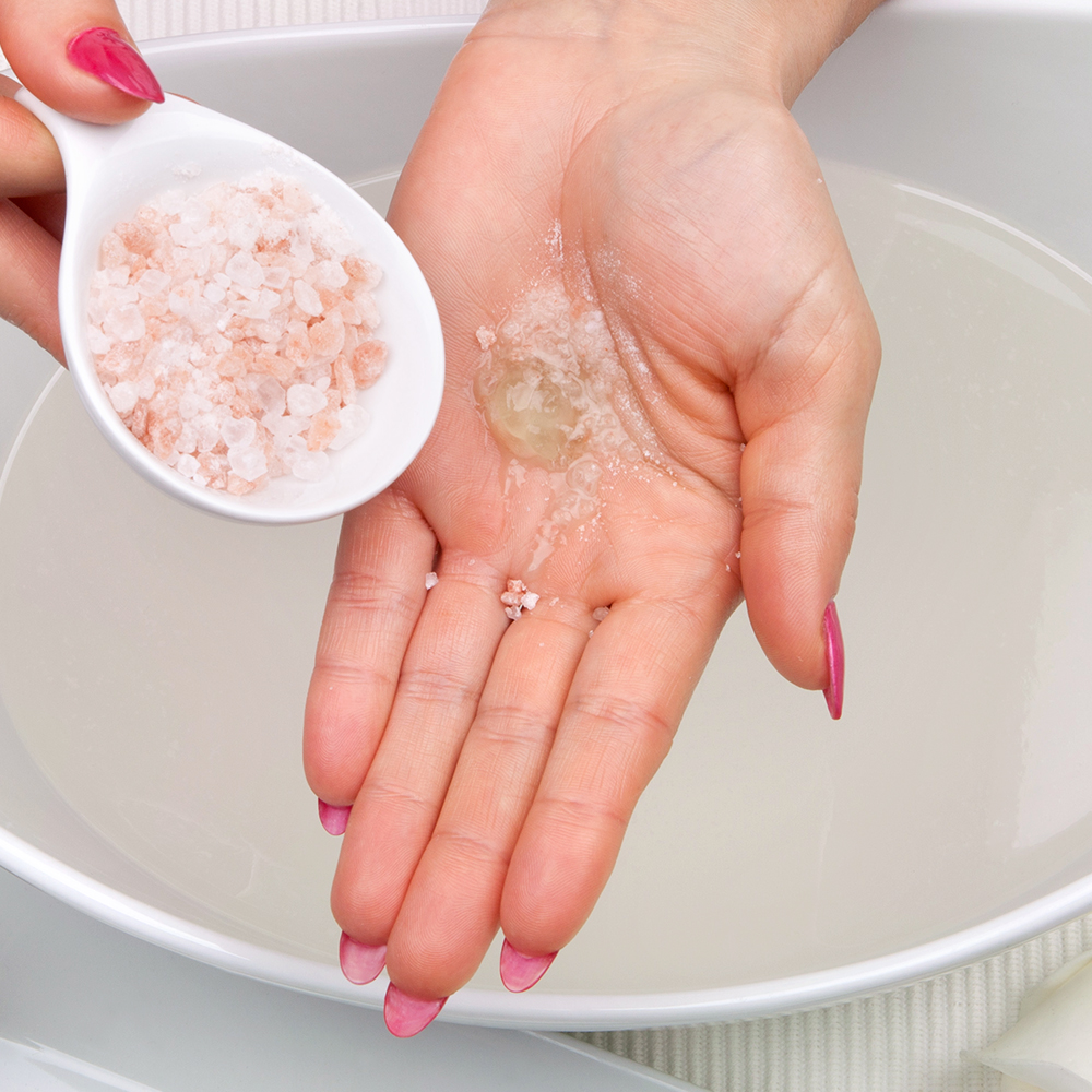 Pflegendes orangenes Spa Salz. Zusammen mit dem regenerierenden Olivenöl und den Hand Care Produkten „Golden Care“ sorgt es für ein glattes und zartes Hautbild.