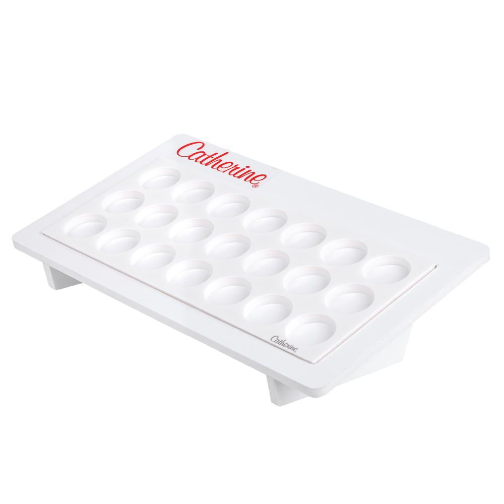 Das Presentationboard ist durch den herausnehmbaren Schubladeneinsatz einfach zu bestücken. Individuell platzieren können Sie auch unser Logo Catherine dank dem beiliegenden Aufkleber. Hinweis: Nur passend für Schubladeneinsatz nail polish Mini 1/3. Schubladeneinsatz ist nicht im Lieferumfang enthalten. Maße: B/H/T 35 x 3,2 (vorne) und 9,1 (hinten) x 19 cm. Lieferzeit: auf Anfrage.