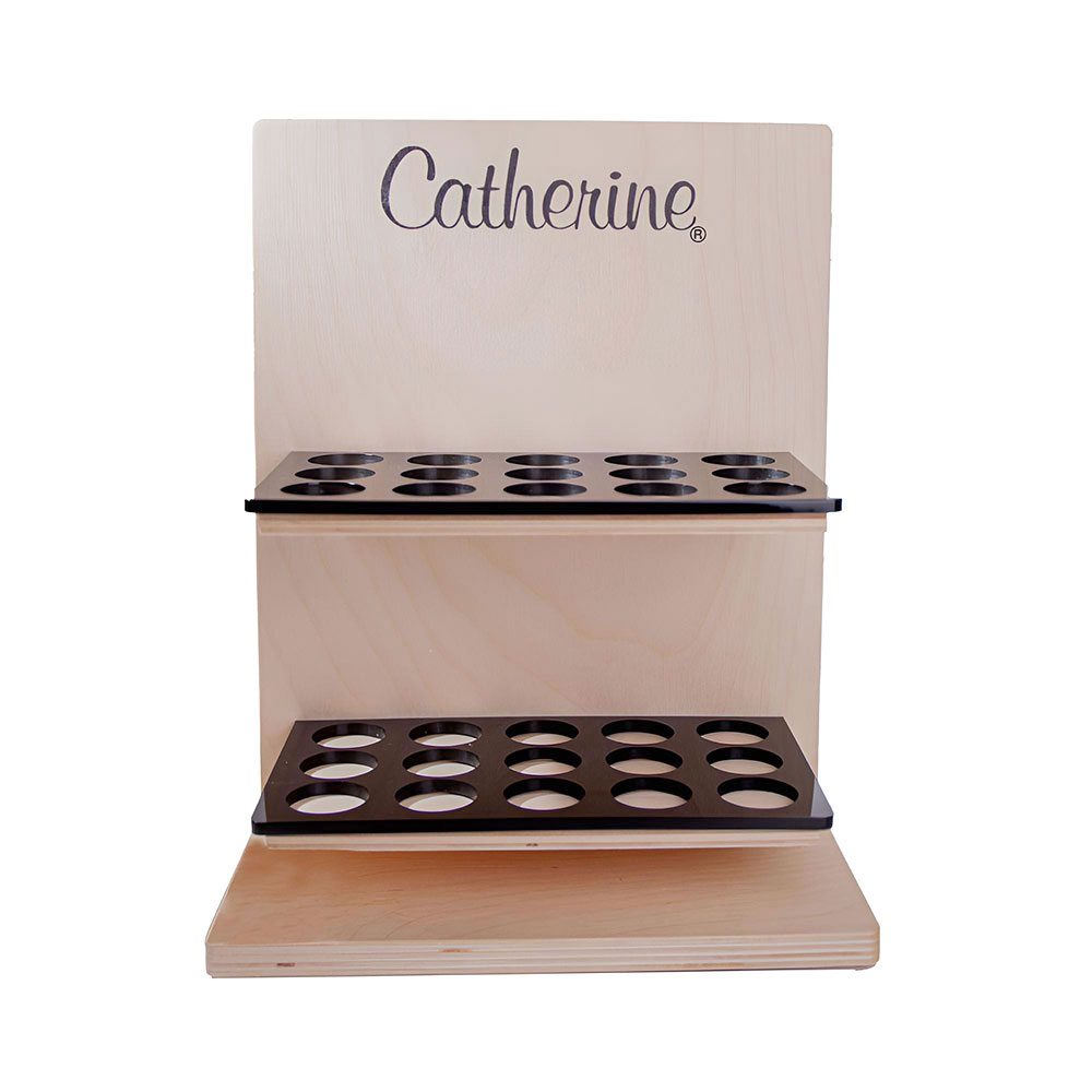 Das Verkaufsdisplay Wooden Harmony Lack ist die ideale Lösung, um Ihre Catherine Farb- und Pflegelacke stilvoll und professionell zu präsentieren.